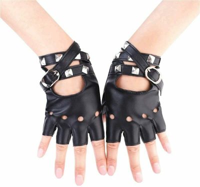*Item Fingerless Leather Gloves *Style Anti-vibration , Anti-impact *Model GG048 *Material Type Synthetic leather *Palm & Back Sythetic leather palm and padded palm *Cuff Magic sticker adjustment *Color Black *Application Handtools, Gardening, Mechanic works